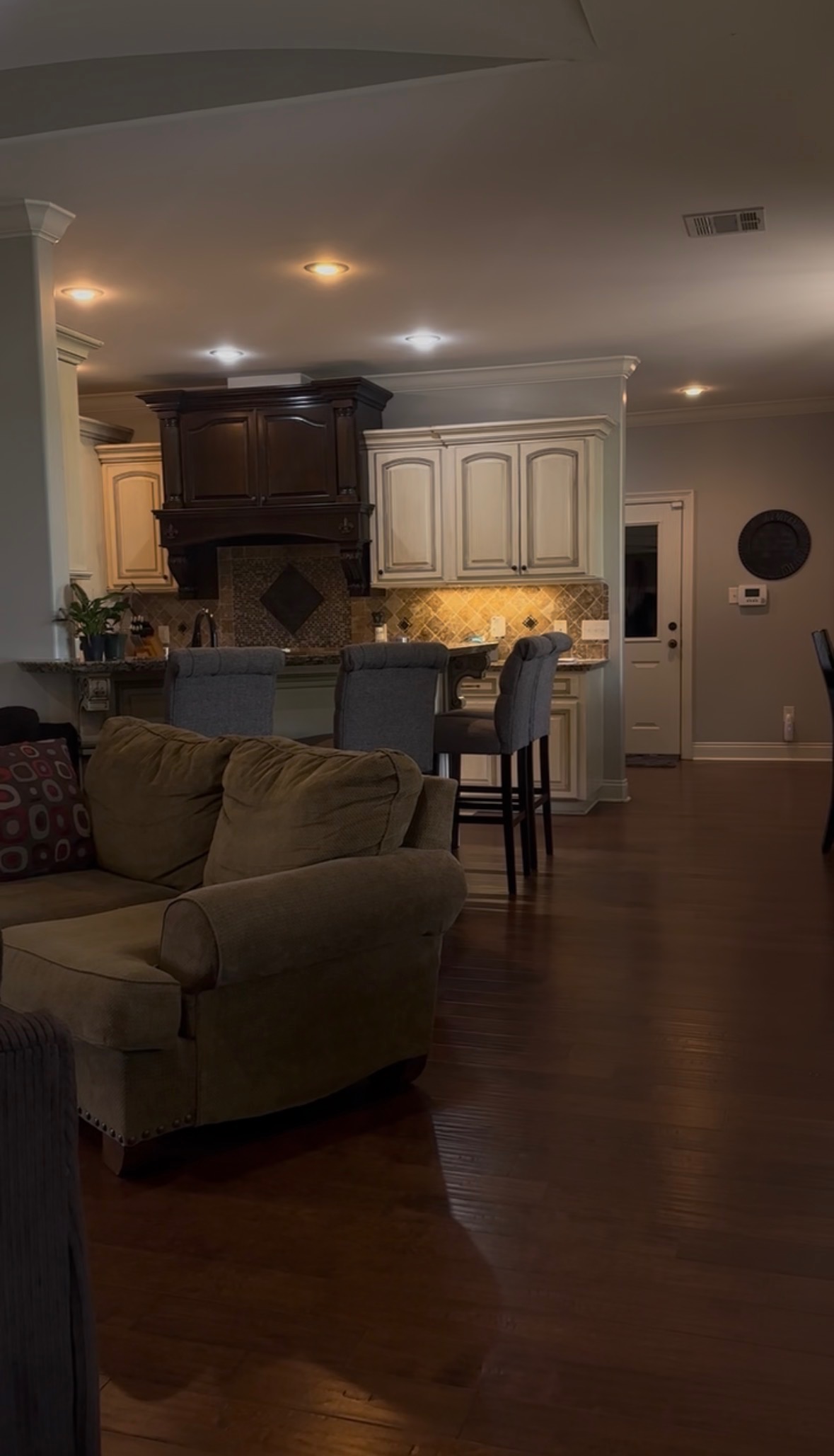 A refreshed, cohesive interior that reimagined the living room, dining area, full kitchen, half bath, and hallway to better suit the client’s lifestyle while enhancing flow, function, and overall aesthetic.